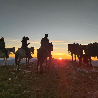This morning will be something entirely different. Waking up before dawn, preparing the horses, riding to the highest peak of Medenica to watch the sunrise. Enjoying the magnificent sunrise, along with a fruit dessert break at the ‘top of the world’.