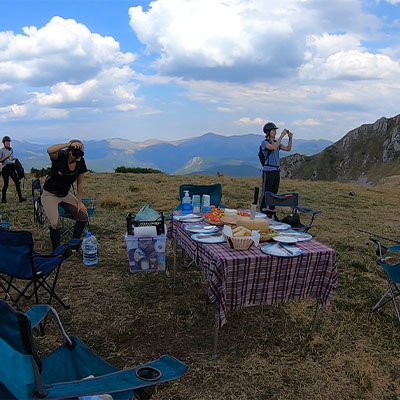 After the long breathtaking experience, our camp team will be lodging in our base camp deep in the mighty mountains far away from the civilized world. Upon arrival, you’ll find that our diligent crew has taken care of all the essentials. The sleeping tents are pitched, the campfire is crackling, and the scene is set for an unforgettable campfire party under the stars, followed by some good night’s sleep. As the sun sets, casting the sky in a spectrum of colors, Jadranka, our esteemed sommelier who will take you on a lovely tour of the flavors of our top-notch wines as the sunsets over the sky at our camp. Prepare to sample and drink as you discover the intriguing history of winemaking in our land. After the degustation your taste buds will be dancing, and once you start sipping this wine, it’ll be a full-fledged wine party in no time.